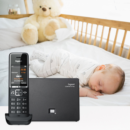 İletişim yaş meselesi değildir: Kolay okunan ekranı ve işitme cihazı uyumluluğu sayesinde yaşlı insanlar da Gigaset COMFORT 550 IP flex’in keyfini çıkarabilir. Yeni nesli de düşündük: Doğrudan arama işlevi, tüm tuşların önceden atanmış bir numaranın çevrilmesini tetiklemesi anlamına gelir. Hangi tuşa basarsa bassın her zaman doğru numara çağrıldığından, bu henüz okuyamayan küçük çocuklar için mükemmeldir. Bebek telefonu işlevi de çok pratiktir: Bir gürültü eşiği aşıldığında Gigaset COMFORT 550 IP flex, evdeki diğer el cihazlarıyla ve hatta anne veya babanın akıllı telefonuyla otomatik olarak bağlantı kurar. Bebek telefonu modunda, gelen aramalar herhangi bir zil sesi olmadan sadece görsel olarak ekranda gösterilir.