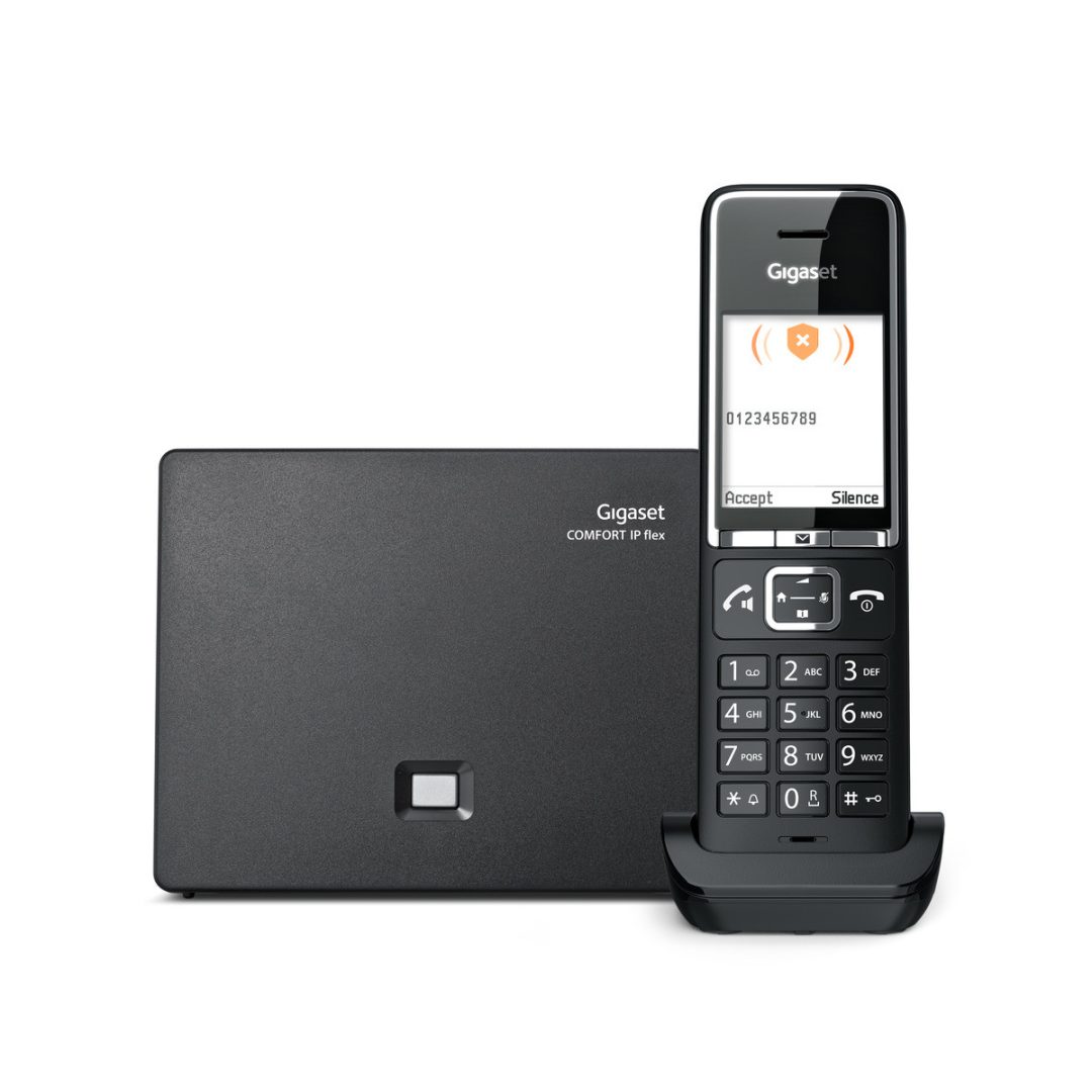 Kişisel konfor alanınıza hoş geldiniz: Gigaset COMFORT 550 IP flex’in kullanımı o kadar kolay ve keyifli ki, hiçbir şey sizi önemli olan şeylerden, yani konuşmalarınızdan uzaklaştıramaz. En yüksek Gigaset kalite standartlarını karşılar ve navigasyon sezgiseldir. Ve geniş, yüksek kontrastlı TFT renkli ekran (44 x 35*0 IP flex), günlük yaşamınızda mükemmel bir arkadaştır.