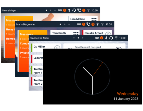 Bunu gerçekleştirmek için yararlanabileceğiniz çok sayıda kullanışlı özellik bulunmaktadır. Gigaset Fusion, cihazı ihtiyaçlarınıza uygun hâle getirmenizi sağlayacak 72 adede kadar programlanabilir ekran tuşu ve widget sunar. Renkli BLF düğmeleri bir hattın boş olup olmadığını gösterir. Gece modlu ekran enerji tasarrufu yapmanıza yardımcı olur.